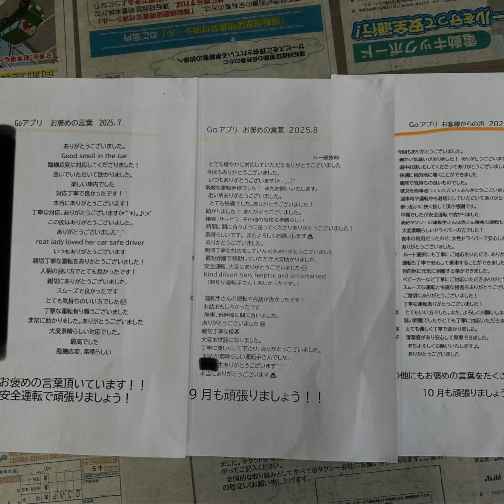 誇りを胸に! 配車アプリを通じてお客様から頂いたお褒めの言葉✨ベテランドライバーさんからついこの間デビューしたての新人さまで☺️👌ほんの一部ですが乗務員さんに向けて掲示していますこれからもたくさんのお褒めのお言葉や感謝のお言葉を頂けるよう高砂タクシー頑張ります🚕⤴️⤴️
